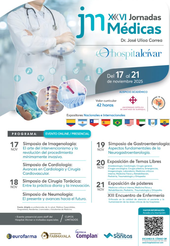 Las “XXXVI Jornadas Médicas Dr. José Ulloa Correa” se realizarán del 17 al 21 de Noviembre, en la ciudad de Guayaquil, en el Hospital Alcívar.