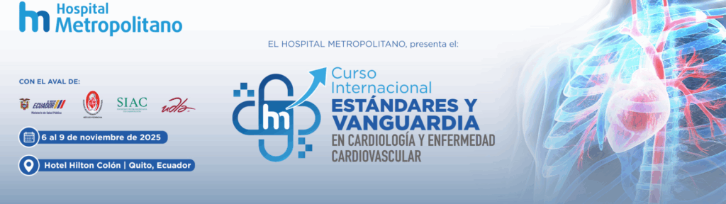 El “Curso Internacional Estándares y Vanguardia en Cardiología y Enfermedad Cardiovascular” está siendo organizado por el Hospital Metropolitano y se realizará del 6 al 9 de Noviembre, en el Hospital Metropolitano, la ciudad de Quito.