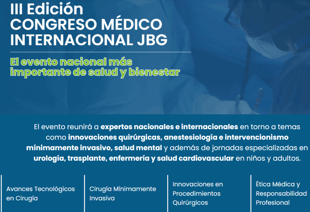 El “III Congreso Médico Internacional Junta de Beneficencia de Guayaquil” y el “Primer Congreso de Salud Mental Junta de Beneficencia de Guayaquil” se realizará del 13 al 15 de Noviembre en el Centro de Convenciones de la ciudad de Guayaquil.