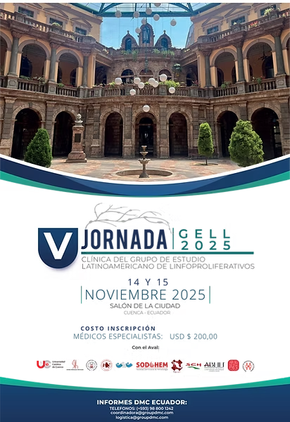 La “V Jornada GELL 2025 Clínica del Grupo de Estudio de Latinoamericano de Linfoproliferativos” se realizará el 14 y 15 de Noviembre, en el Salón de la Ciudad de Cuenca.